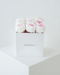 تشكيلتنا المميزة من الصندوق الأبيض الفاخر بتسع ورود طبيعية دائمة تعيش لأكثر من سنة من الروز البينك والأبيض . تعكس الحب الأبدي والفخامة، حيث تحتفظ بجمالها لمواسم طويلة، مما يجعلها الهدية الأمثل لحب لا يفنى أبدًا.