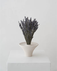 Elegant and serene — this preserved lavender arrangement stands gracefully in a modern cone-shaped ceramic vase, blending timeless nature with minimalist design. Each lavender stem is carefully dried and preserved to maintain its natural scent and muted purple color.